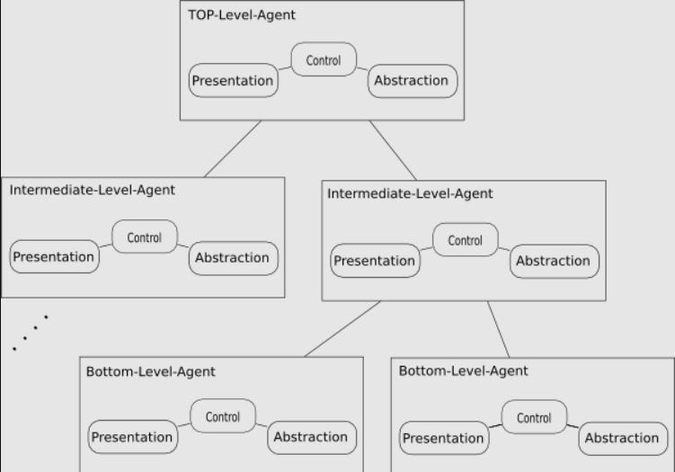 PAC is used as a hierarchical structure of agents, each consisting of a triad of presentation, abstraction and control parts. The agents communicate with each other only through the control parts.
